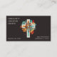 Introducing our modern religious business card, designed with a contemporary touch for the modern age. This sophisticated card features a sleek QR code, seamlessly blending technology with tradition. Perfectly suited for a Christian Church, this card is adorned with a striking modern cross in colours of brown, orange & teal, symbolizing faith and spirituality. With its unique design, this business card is an ideal choice for pastors, youth or worship ministers, or any church staff members who strive to make a lasting impression. Personalize with your details & logo now and share your message with style and utmost professionalism.