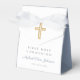 Personalized Religious Cross Boy Blue First Communion Favour Box. Part of the Dusty Blue Script Cross Boy First Communion Suite with matching invitation, stationery and first communion party accessories.