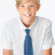 An elegant religious pattern tie that has as a pattern a cross from faux silver foil on classic blue background, recommended for a boy's first communion or religious confirmation.