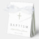 Religious Cross Dusty Blue Script Boy Baptism Favor Box
