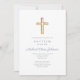 Religious Cross Dusty Blue Stripes Boy Baptism Invitation