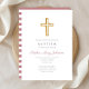 Religious Cross Dusty Pink Stripes Girl Baptism Invitation