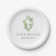 Religious Cross Green Botanical God Bless Baptism Paper Plate