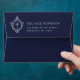 Religious Cross in Crest Navy Blue Faux Silver Envelope