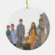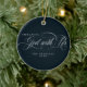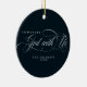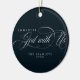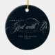 An elegant religious Christmas tree family keepsake. This design features "Emmanuel God with is" is in a mix of white script and serif font on a navy blue background. Customize with your own message and favourite portrait photo.