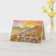 A thinking of you card featuring a Bible verse from the book of Matthew 28:20 KJV "I am with you always" decorated with a desert mountain sunset with rugged rocks and soft purple mountains in the distance hand drawn with ink and painted with watercolor. On the inside is a coordinating shade of orange and text that you can edit to fit your needs.