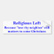 If you're tired of the "Religious Right" hiding behind doctrine and using the word of a loving God to spread hatred and fear, help spread a new movement. Show the world that you are part of the Religious Left with this bumper sticker