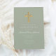 Religious Sage Green Wood Cross Christening Invitation