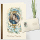 Featuring a beautiful traditional Catholic religious vintage image of the Blessed Virgin Mary with the Baby Jesus, Madonna of the Street, to be used as a beautiful expression of Sympathy. A blue floral bouquet accents the background.