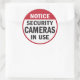 Caméras de sécurité en cours d'utilisation autocollants de préavis pour votre magasin de détail ou autre entreprise. Placez des autocollants autour de votre entreprise pour avertir les futurs voleurs qu'ils seront regardés en caméra. Les mots se distinguent par leur police de caractères rouge et noir.