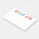 Ce bloc de notes 10 x 6 est parfait pour tous ! Avec ses couleurs vives et joyeuses et son imprimé en bloc classique disant "Great Job", ce serait génial de donner à quiconque a fait un excellent travail ces derniers temps ou ce serait une merveilleuse note de mettre sur le déjeuner de quelqu'un, bureau, travail scolaire, ordinateur, etc.