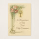 Personalize this beautiful First Holy Communion Remembrance Card with pink roses, chalice, and host.