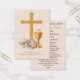 Personalize this beautiful gold cross, host and chalice floral design First Holy Communion Remembrance Card with a beautiful traditional Catholic Anima Christi prayer on the back.