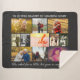 In Loving Memory Photo Blanket which you can personalize with pictures of your loved ones. The wording is fully editable, and currently reads "in loving memory of [name]" at the top and, "He asked for so little but gave so very much" at the bottom. The photo template is set up for you to add 11 of your favourite photos to create your own remembrance keepsake. The design allows you to add landscape, square and portrait pictures to give you as much flexibility for placement as possible. This unique, remembrance photo blanket has a background colour of very dark grey with white typography, which you can edit if you wish (click customize to enter design tool - or message me for assistance).