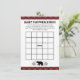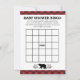 Jouez au bingo sur votre baby shower à thème bûcheron ! Les clients remplissent ces cartes de bingo avec les cadeaux qu'ils pensent que la future maman recevra. Quand Elle ouvre ses cadeaux, ils marquent les objets correspondants. Cette conception comprend un ours à bébé mignon avec un feuillage boisé et une bordure en plaid de buffle. Le dos de la carte est également plaid de buffle. Une invitation de baby shower de coordination est également disponible au magasin.