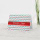 Félicitez vos employés pour leur anniversaire avec votre entreprise avec cette carte d'anniversaire de l'emploi heureux, design et contemporain, dans un motif de chevron zigzag bleu, rouge et blanc