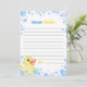 Cette carte de capsule de temps en caoutchouc canard est une excellente façon de créer un souvenir durable de la célébration du premier anniversaire du bébé et de capturer les pensées et les souhaits des êtres chers en ce moment spécial. Célébrez cette étape d'une manière unique et mémorable avec notre carte capsule de premier anniversaire.