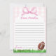 Enregistrez vos souvenirs pour l'avenir avec notre carte de note pour filles de football temps Capsule. Doté d'un arrière - plan rose en vichy, d'accents d'arc doux et de détails de football ludique, cette carte est parfaite pour que les invités écrivent des souhaits spéciaux et des messages pour votre petit MVP à ouvrir des années plus tard. Un ajout judicieux à votre fête d'anniversaire sur le thème du football rose.