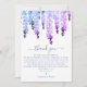 Carte de remerciement de mariage aquarelle Fleurs de wisteria avec votre photo préférée et le texte "Merci" dans une typographie violette moderne accentuée de fleurs de wisteria aquarelle bleue, violette et lavande. Fait partie d'une collection conçue par Evco Studio www.zazzle.com/store/evcostudio