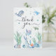 Carte de remerciement "One-Der the Sea" pour le 1er anniversaire d'animaux de l'océan, envoyez une vague de gratitude avec cette adorable carte de remerciement sur le thème de l'océan "One-Der the Sea" ! Parfaite pour célébrer le premier anniversaire de votre petit, cette carte présente de charmants animaux marins aquarelles comme des tortues, des baleines, des dauphins, des poissons et des coraux, le tout sur un fond pastel doux sous l'océan. Les polices ludiques et les illustrations marines sucrées font de cette carte un parfait complément pour votre thème de fête océanique ou nautique. Personnalisez-la avec le nom de votre enfant et un message sincère pour remercier vos invités pour leur amour, leurs cadeaux et pour avoir rendu la journée spéciale de votre petit bout vraiment magique.