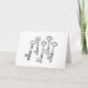 Carte pliée comportant un stylo et un dessin à l'encre de style traditionnel dessinés à la main d'une série de clés vintages de squelette antiques. Enveloppe incluse. À l'intérieur. Oeuvre : Stylo et encre sur papier. Copyright Dominic A. White. Tous droits réservés.
