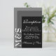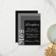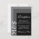 Carte mariage simple et chic pour mariées qui ornent leurs cérémonies dans un style moderne et de couleur noir et blanc. La suite mariage chic a une police blanche moderne avec des initiales monogramme sur le côté.