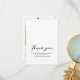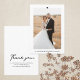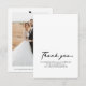 Un petit carte de remerciements mariage avec un petit message pour les clients. Script de calligraphie noir sur un arrière - plan blanc. Inclut photo arrière et coeur graphique de chaque côté.