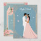 conception de carte de mariage, simple et élégant, nom du couple est "MEGHA & NEELANSH", couleur bleu pâle ou rose pâle