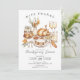 Cette invitation à dîner de Thanksgiving reflète élégamment l'esprit de la fête, avec des couleurs chaudes de l'automne et des images festives. Le design comprend une charmante illustration d'une table de vendanges généreuse, ornée de décorations saisonnières, invitant les invités à se réunir et à célébrer. Le texte est conçu avec soin pour transmettre un sentiment de chaleur et de gratitude, ce qui en fait le moyen idéal pour la famille et les amis invitations de partager un festin mémorable. Idéale pour des rassemblements formels et décontractés, cette invitation donne le ton d'une joyeuse célébration de l'Action de grâce.