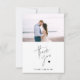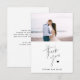 Carte de remerciements mariage simple. Dispose d'un script mince et d'un petit coeur. Noms personnalisés sur le devant et un message pré-écrit sur le dos.