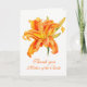 Montrez que votre appréciation à votre mère ou d'autres préposés de mariage avec cette peinture florale orange de main de hemerocallis d'aquarelle d'art vous remercient carte de mariage. Perfectionnez pour donner avec une marque de votre appréciation telle qu'un chèque-cadeau ou pour s'ajouter à vos sacs de faveur de mariage. Nuances à la mode d'orange lumineuse sur un arrière - plan blanc simple. Customisez/personnalisez cette carte avec des préposés titre, nom et un message personnel à l'intérieur. Art et conception botaniques de fleur d'aquarelle unique de © de Sarah Trett pour www.mylittleedenweddings.com