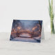 Jolie carte de Noël sur le thème du pont enneigé avec neige et lumières. Customisez le verset intérieur pour convenir.