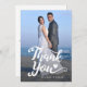 Un script de "Merci" manuscrit fantaisiste superposé sur votre photo mariage. Correspond au script "Save the Date" et "Save our Date" avec les coeurs. Personnalisez en ajoutant vos détails, message de remerciement, photo avant verticale. Utilisez un exemple de message ou écrivez votre propre message. Ce carte de remerciements fantaisiste et élégant est parfait pour les mariages, les diplômes et autres événements similaires.