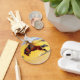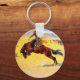 Keychain featuring Frederic Remington’s oil painting Cold Morning on the Range (1904). A cowboy rides a brown and rambunctious horse. A great gift for horse lovers and the Old West.