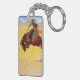 Porte - clé représentant la peinture à l’huile de Frederic Remington, Cold Morning on the Range (1904). Un cow-boy fait le tour d'un cheval brun et rambutant. Un grand cadeau pour les amateurs de chevaux et le Vieux-Ouest.