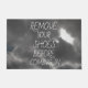 This is a cool dark cloud print large doormat that says 'REMOVE YOUR SHOES BEFORE COMING IN' in big white letters. Hopefully, everyone will be barefooted already when you open the door!