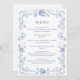 Renaissance Ornate Dusty Blue Floral Wedding Menu