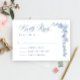 Stylish editable easy to use wedding templates, more items (invitations, rsvp, thank you cards, stationery & decor) with the same design are available in the store. For further customization, please click the "Personalize this template", then "Edit using Design Tool". Elegant Vintage Blue French Garden Floral Wedding RSVP Card.