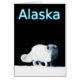 Un tableau numérique d'un Renard arctique lors d'une nuit polaire brillante. Lecture de texte, "Alaska" apparaît en bleu et blanc brillant.