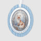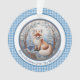 Ce charmant ornement illustre un renard orange et blanc contre une forêt vinicole bleue et blanche. Elle est bordée de marron et de bleu, avec un accueil personnalisé, et un arrière - plan en vichy bleu frais. Assurez-vous de taper le texte souhaité dans la zone Personnaliser. Les couleurs uniques et le style charmant de cet ornement renard ajouteront une touche unique à votre sapin de Noël ou à votre décor de maison.