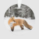 Renard rouge avec queue broussailleuse dans la neige blanche et froide. Grande pinède verte dans le arrière - plan. Belle nature.