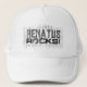 This tan trucker hat has the rough Renatus Rocks logo on the front.