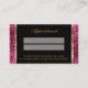 Cartes de visite de nomination. Parties scintillant rose chaud lèvres sur un arrière - plan noir aux accents dorés. (Pour les produits et modèles correspondants, tapez dans Mot-clé : PARTIES SCINTILLANT LIPS ) (Note : Pas de Parties scintillant réelle, c'est une impression) 100% Personnalisable. Prêt à remplir la ou les cases ou Cliquez sur le bouton IT de la PERSONNALISER pour modifier, déplacer, supprimer ou ajouter le texte ou les graphiques. Fabriqué avec des graphiques vectoriels haute résolution pour une impression professionnelle. REMARQUE : (Tous les modèles de produits zazzle sont des "impressions" sauf indication contraire) Si vous avez des questions sur ce produit ou avez besoin de modifications, veuillez me contacter à siggyscott@comcast.net ou visiter mon lien de magasin : http://www.zazzle.com/designsbydonnasiggy?rf=238713599140281212 (Copier et coller) Je serai heureux de vous aider. Merci pour le support et l'arrêt par mon magasin -DesignsbyDonnaSiggy.