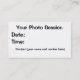 Carte de visite / Photographie avec séance photo Date et heure sur le dos Reposez-vous hors de la foule avec des cartes de visite personnalisés. Ajoutez votre propre logo, une photo ou un graphique, ou utiliser un modèle pré-existant. Les cartes de visites de Zazzle sont imprimées de manière professionnelle. Personnalisez chaque côté de votre carte de visite et choisissez parmi des milliers de polices de caractère gratuitement !