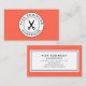 Un rétro carte de visite moderne comportant un logo noir et blanc circulaire sur l'avant sur un arrière - plan bleu. La couleur d'arrière - plan peut être changée en tout ce qui assortit vos affaires. Ce serait parfait pour un coiffeur, le salon de coiffure ou un coiffeur comme le logo comporte des ciseaux. Il adapterait également à une ouvrière couturière, à un tailleur ou à un n'importe qui autrement qui travaillent avec des ciseaux.