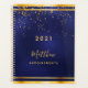 Un arrière - plan bleu foncé aux couleurs irrégulières avec un cadre faux or et des confettis dorés. Personnalisez et ajoutez une année, un nom et un titre. Un planificateur pour l'organisation de clients d'affaires, pour faire des listes, ou votre vie quotidienne.