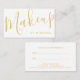 Faites de votre entreprise un carte de visite de rendez-vous d'artiste de maquillage blanc et d'or d'écriture moderne. Cette carte de rendez-vous comporte le mot "maquillage" en style de police de calligraphie moderne dorée sur le côté avant avec des détails en style de police sans serif moderne doré sur le côté arrière. Parfait pour les maquilleurs, les salons de beauté, les cosmétologistes et beaucoup d'autres professions. Remarque : Les détails du papier sont simulés dans l'illustration. Il n'y aura pas de métal sur ce produit.