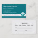 Utilisez ces cartes de visite à thème pour implant dentaire pour un dentiste avec le graphique d'un emblème d'implant dentaire et design moderne simple, y compris le modèle de rendez-vous sur le revers de la page. Affichez-les dans votre bureau de dentiste et votre personnel peut planifier sa prochaine visite.