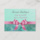 Carte de visite rose et turquoise avec blanc avec Bow rose et Parties scintillant en faux rose Le dos est rose aussi. Ajoutez simplement vos propres informations d'affaires dans la zone de personnaliser !