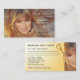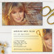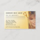 Carte de visite personnalisable avec une jeune femme / fille aux cheveux radieux et une paire dorée de ciseaux (que vous pouvez supprimer sur le devant si vous ne l'aimez pas). L'arrière de la carte a de l'espace pour ajouter des rendez-vous.